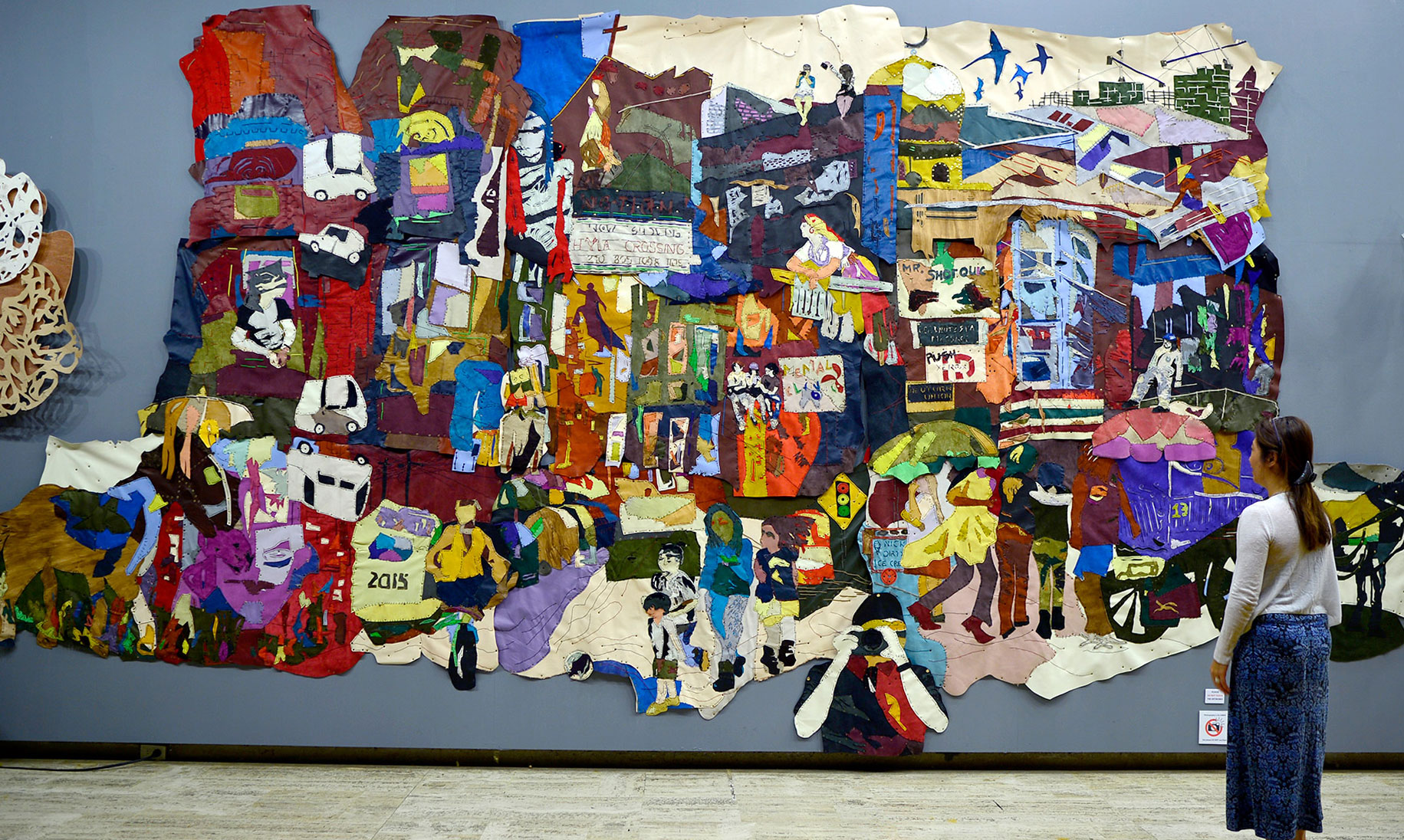Click.Share.Tag. is a large wall hanging made entirely of leather cut outs. This project explores the image-making within recent experiences of places as transient spaces within the culture of attention-deficit culture.